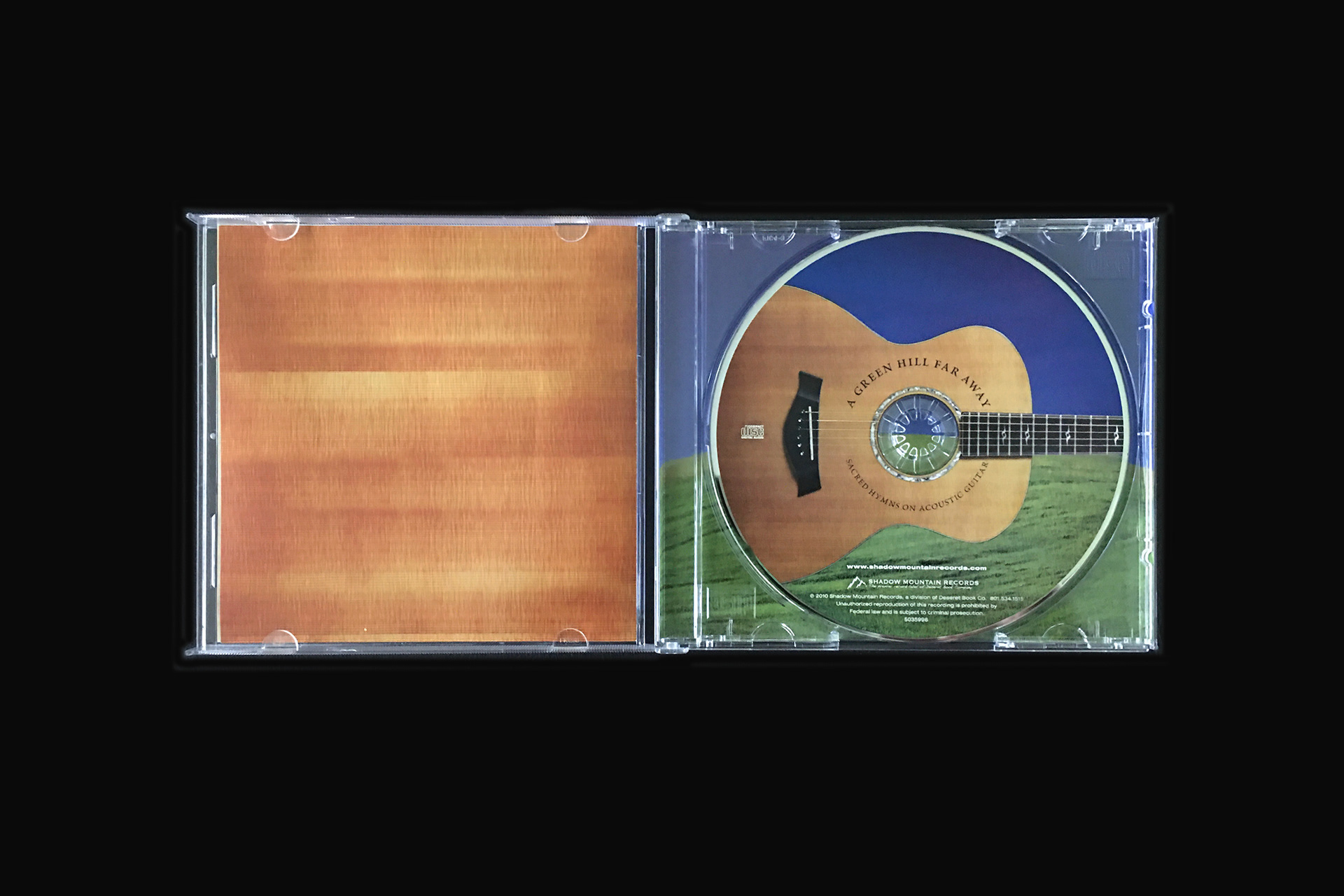 Hymns on guitar! I had some fun with this one combining the green hill of the title track with the sound hole of the guitar.